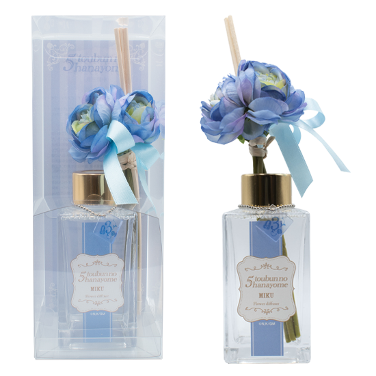 当初のクールな印象から徐々に表情が豊かになった三玖をイメージした香りは、摘みたての花々や水が溢れんばかりのバケツと花瓶が多く広げられているフラワーマーケットの新鮮でデリケートな花の香りです。フレッシュなグリーン、ジャスミンサンバックにチュベローズの透明感と潤いを感じられる上品な香りです。