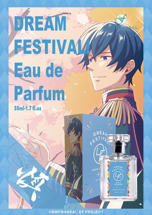 青色を彷彿とさせるフレッシュな香りから、フローラルの柔らかく心地よい香りへと変化していきます。及川慎をイメージした安らぎを感じる香水です。