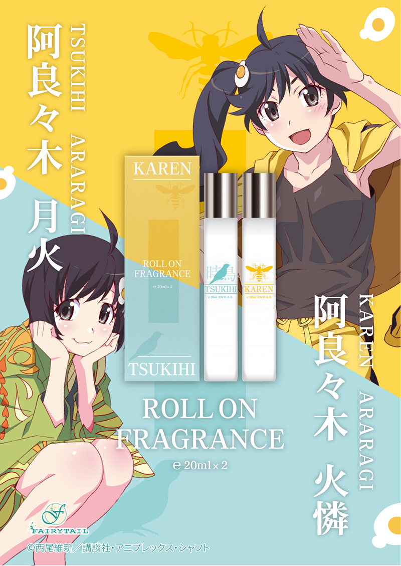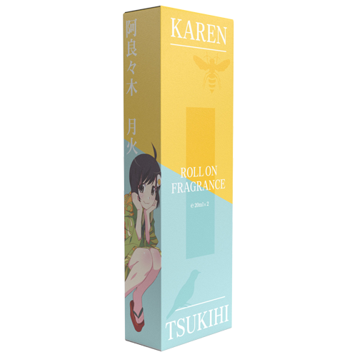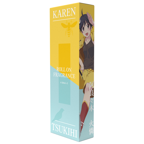 ファイヤーシスターズの実践担当「阿良々木火憐」をイメージした香水です。ヒナギクの清々しい香りのなかにエネルギッシュな印象のフリージアが香り立ちます。時間とともに少しずつローズの甘さが交わると爽やかな香りから一変、可愛らしい印象へと様変わりし、女の子らしい等身大の彼女を感じられます。ラストでは正義感に満ち溢れた彼女の性格を表現した、清潔感のあるウッドの香りが広がります。