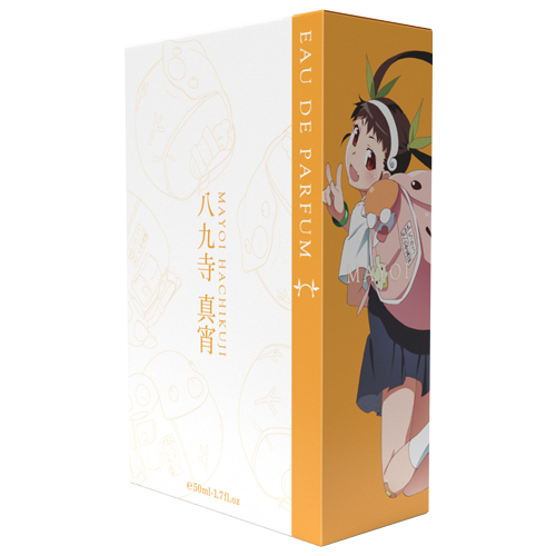 「八九寺 真宵」をイメージした香水です。ジューシーなマンゴーの甘さが可愛らしさを引き立て、パッションフルーツ・オレンジの爽やかな香りが彼女の無邪気でお調子者な性格を表現しています。ミドルのピーチ、ラストのハイビスカスなど嫌みのない柔らかな甘さが交わると、慈愛に満ちた思いやり深い彼女のあたたかみある性格を感じられます。