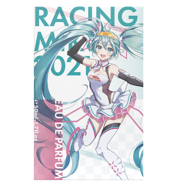 森倉円氏によって描かれた雰囲気の異なる「RACING MIKU 2021」のビジュアル3種をイメージした香水が登場です!